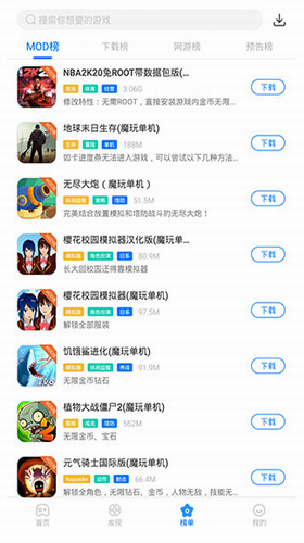 3、魔玩助手花样游戏排行榜,在此可以根据下载榜、网友榜和预告榜的排行寻找高人气游戏。